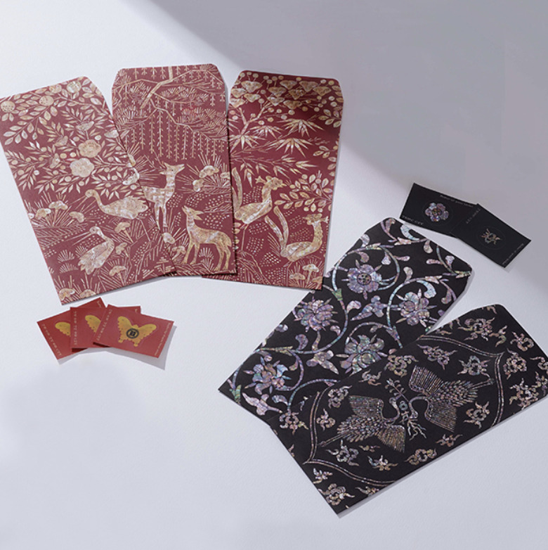 - 특징: 나전칠기 문양의 엽서형 봉투 세트